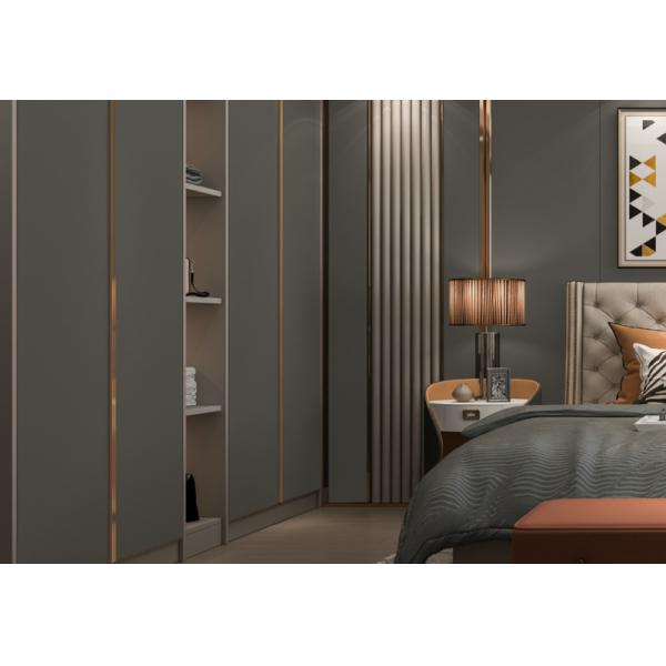 MJMHD CYLD-009 Modern Shaker Style Wardrobe Door | 22mm ENF Grade PVC Wrapped Panel w/ Aluminum Frame | Custom Size Grey & Gold Flat Panel Cabinet Images |